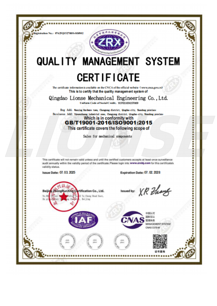 Воспоставување и подобрување на системот за проверка на квалитетот, од инспекција на суровините до производствениот процес, а потоа до финалната проверка на готовите производи, сите строго го контролираат квалитетот. Користење на напредна опрема за тестирање и научни методи, сеопфатно тестирање на точноста на големината на запчаникот, механичките својства, квалитетот на површината итн., како и производот со тест на цврстина, тест на истегнување, тест за замор и други тестови за изведба, во согласност со релевантните стандарди и барањата на клиентите за да се осигура дека секој производ е сигурен.